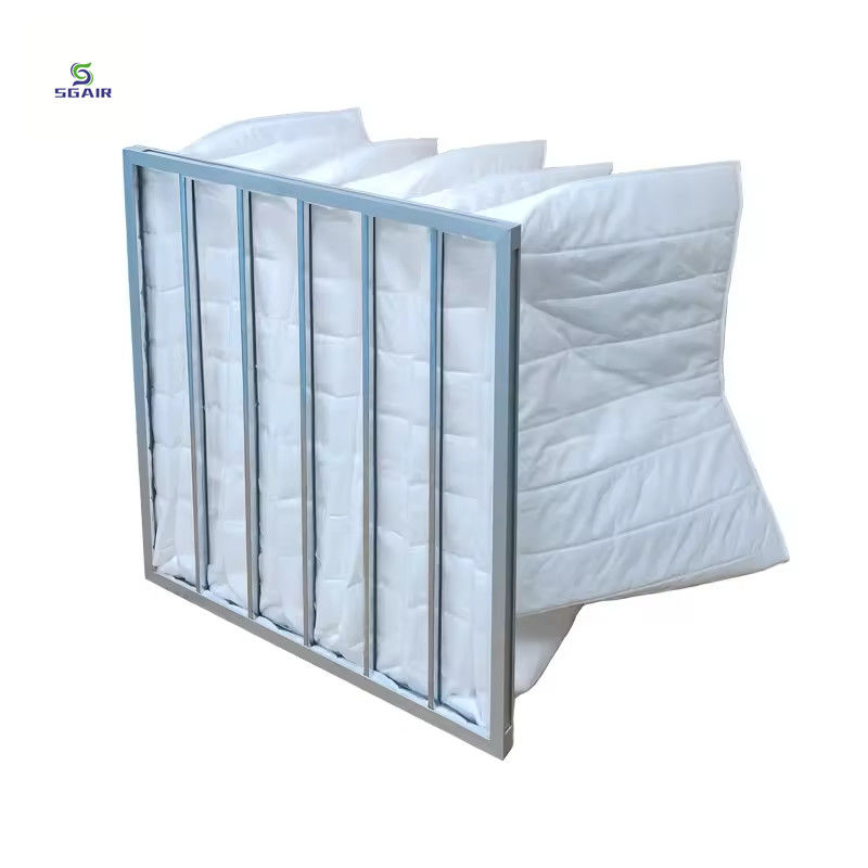 Filter udara saku menggunakan bahan filter efisiensi tinggi, efisiensi filtrasi bisa mencapai 99,9%